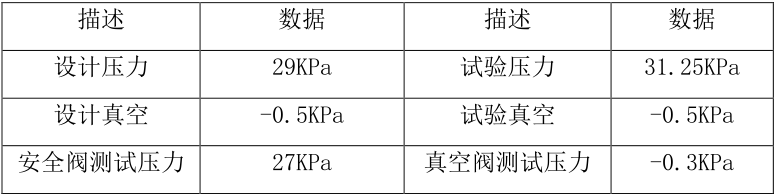 3)外罐氣壓、氣密性試驗數據表: